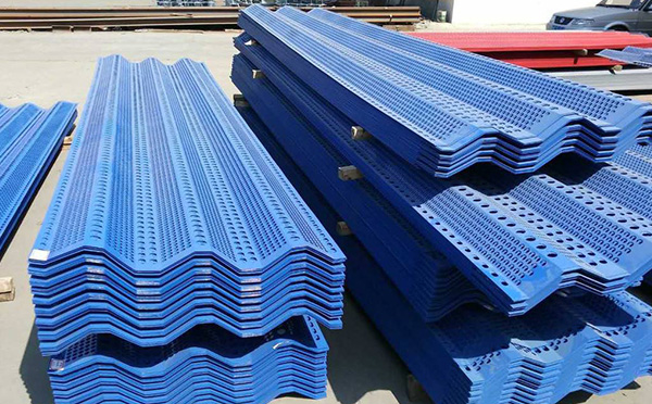 防風(fēng)抑塵網(wǎng)板材厚度0.5mm-1.5mm之間,均是由數(shù)控設(shè)備進(jìn)行沖孔,成型,再進(jìn)行雙面高壓靜電粉末噴涂的表面抗腐蝕處理而成。